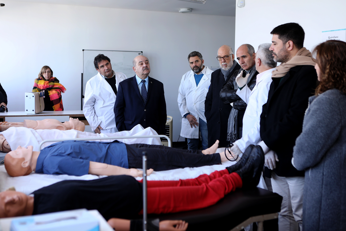 El presidente de la UNLP, Martín López Armengol, y el vicepresidente Académico, Fernando Tauber, asistieron al acto de demostración de los nuevos dispositivos que serán incorporados al equipamiento del Hospital Universitario Integrado (HUI), con el objetivo de fortalecer el desarrollo de actividades educativas para las carreras de la Facultad. Estuvieron acompañados por el decano, Juan Basualdo Farjat, la vicedecana Mónica Ferreras, el secretario de Administración y Finanzas, Claudio Canosa, el director del Hospital Juan Pablo Cocozzella, el subdirector, Marcelo Busquets y la secretaria del HIU, Fernanda Retes.